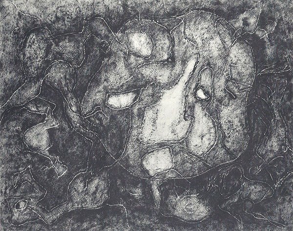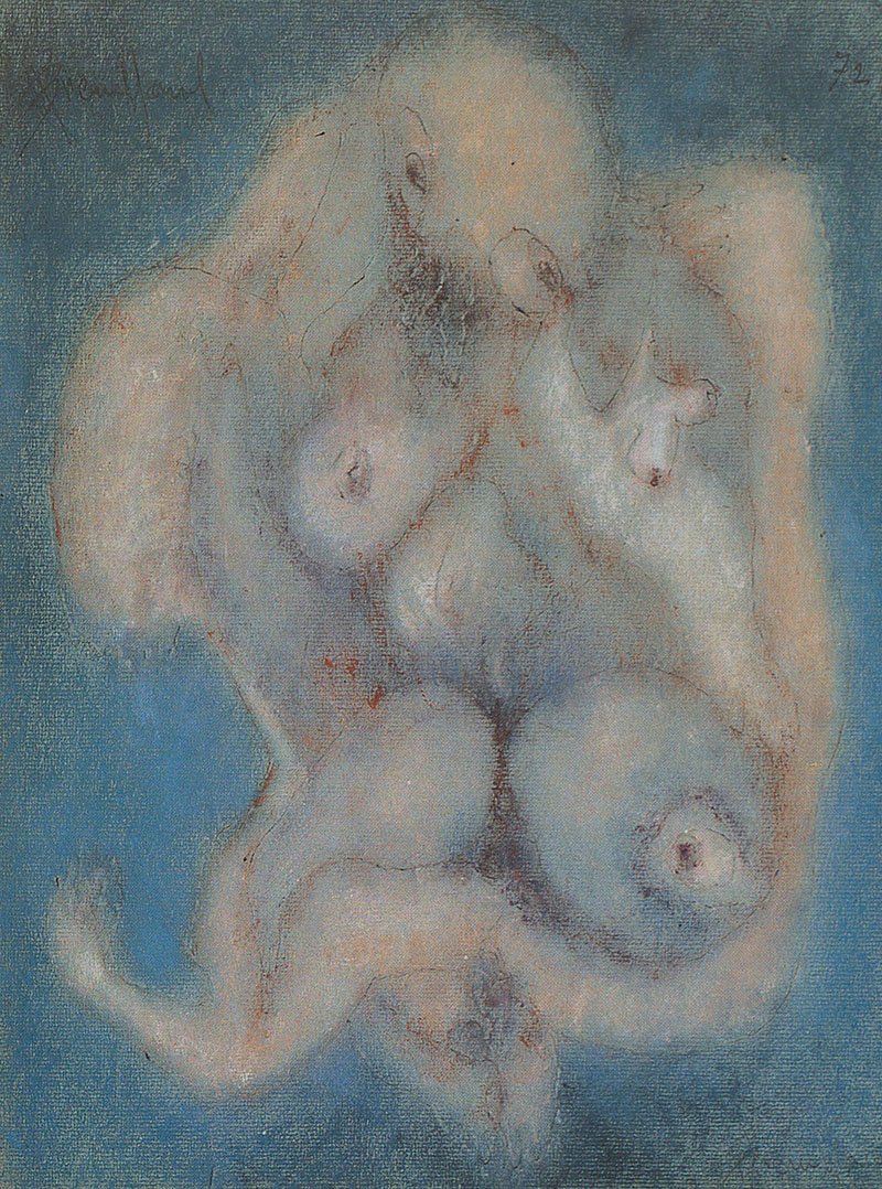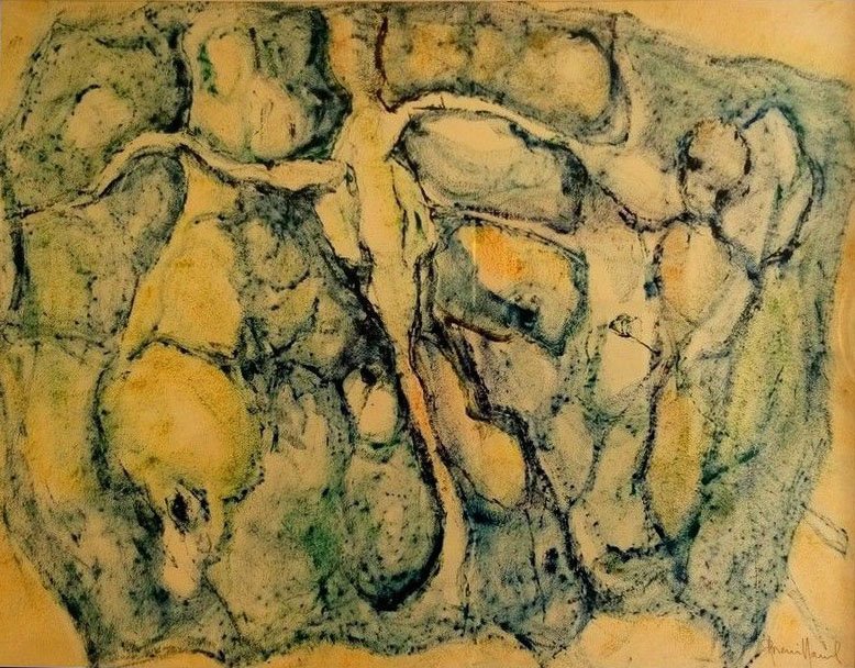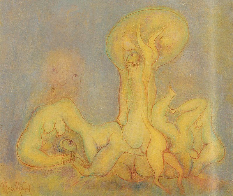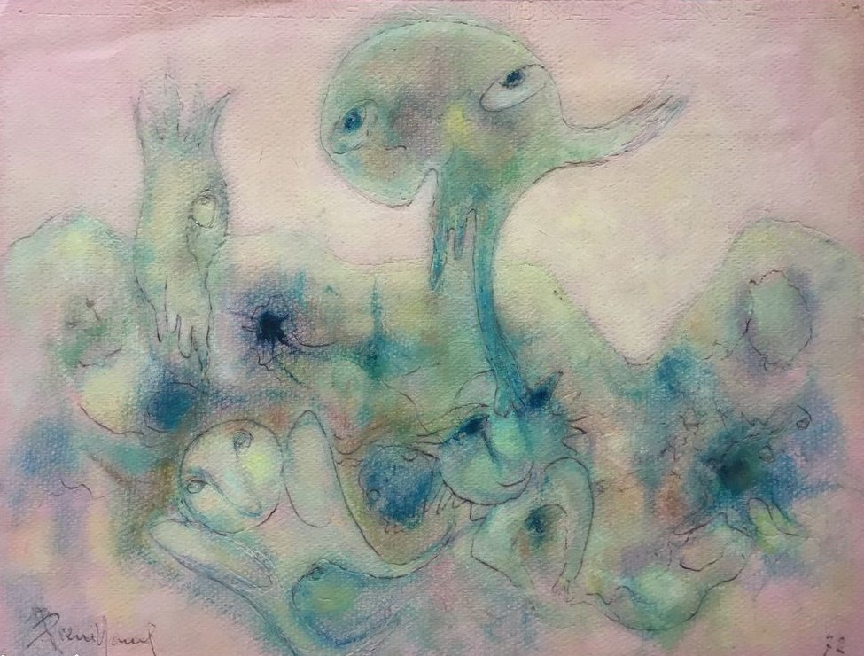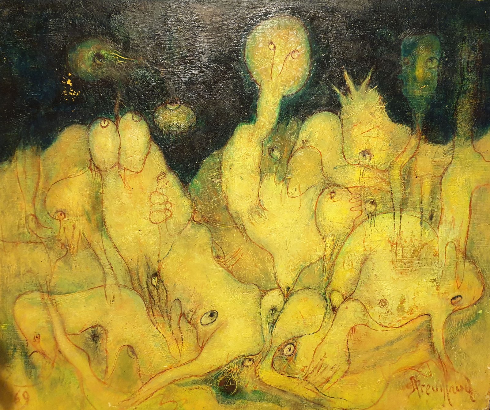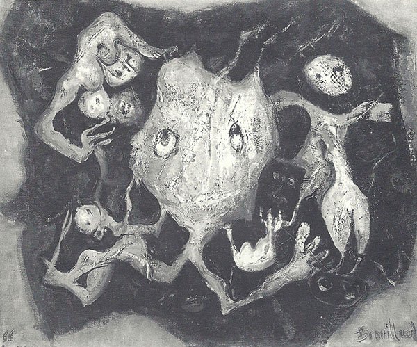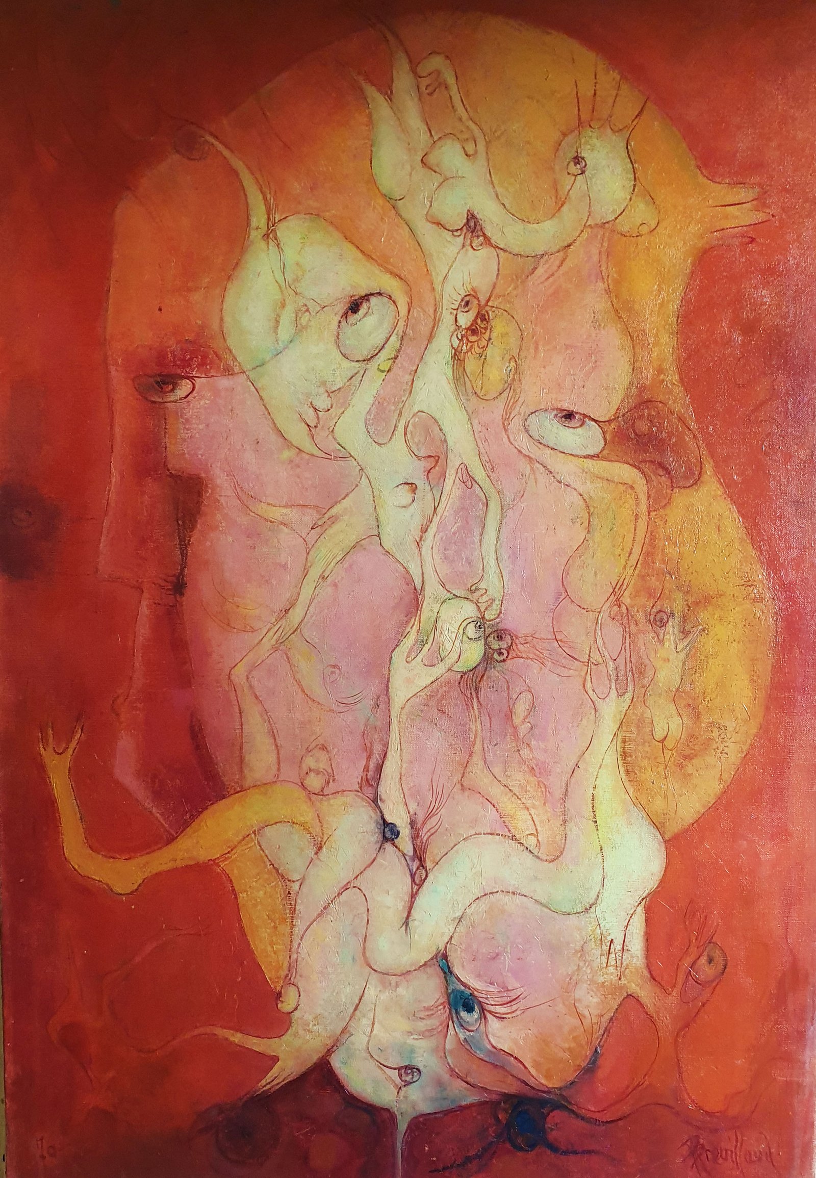 Dans la solitude de son atelier surgissent en lui des fantasmes. Il découvre un monde d'êtres hybrides et torturés se projetant dans les espaces intersidéraux. Tous ces êtres en décomposition lui font éprouver un besoin de recréation. Après cette grande méditation, il reprend ses pinceaux pour traduire plastiquement ses sensations dans le but de dégager de tout ce magma de branches et de pierres, des forces humaines et animales. Ces recherches sont élaborées dans des matières et des couleurs qui doivent être riches, et bien vieillir comme des pierres précieuses.