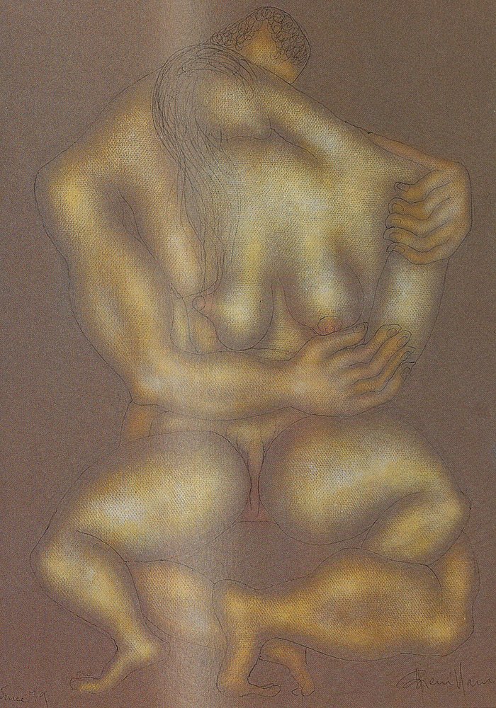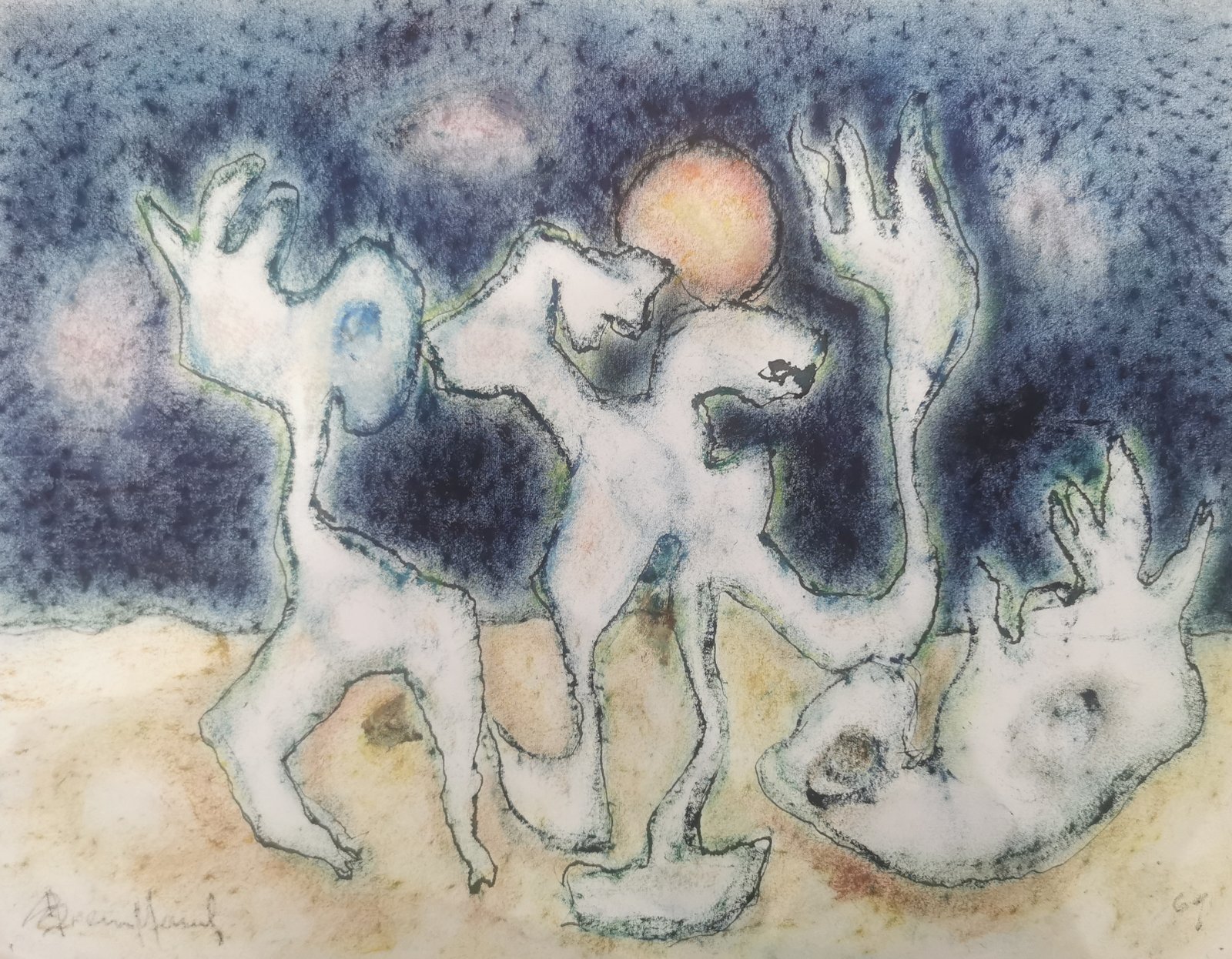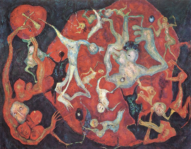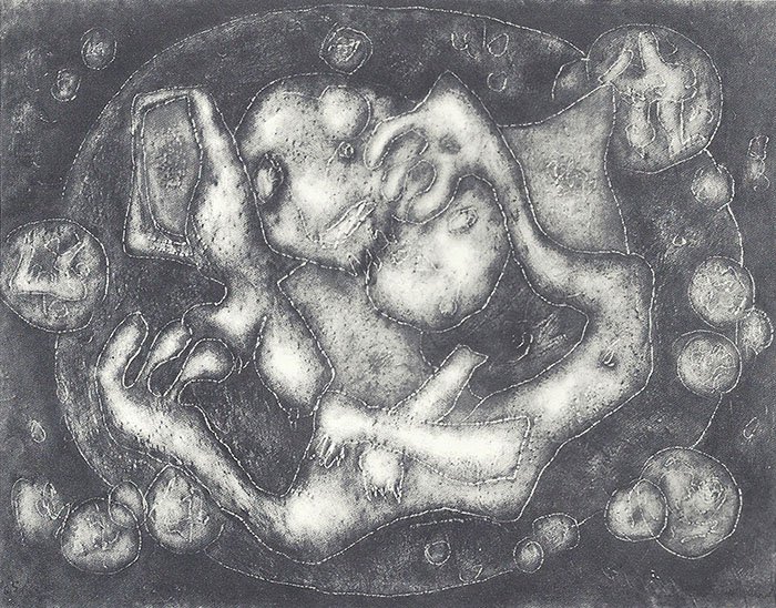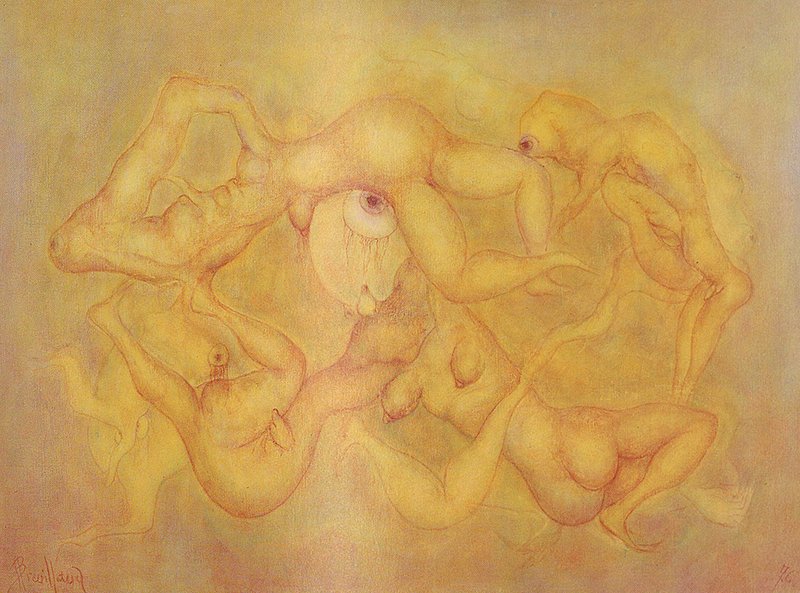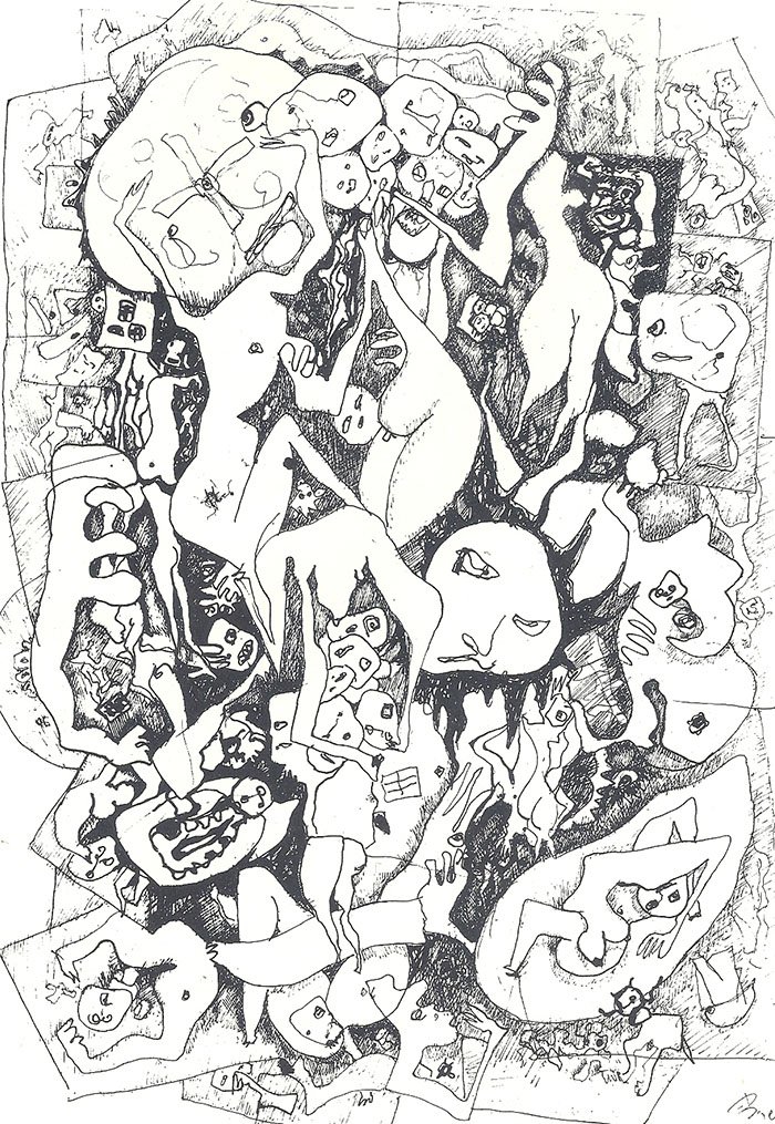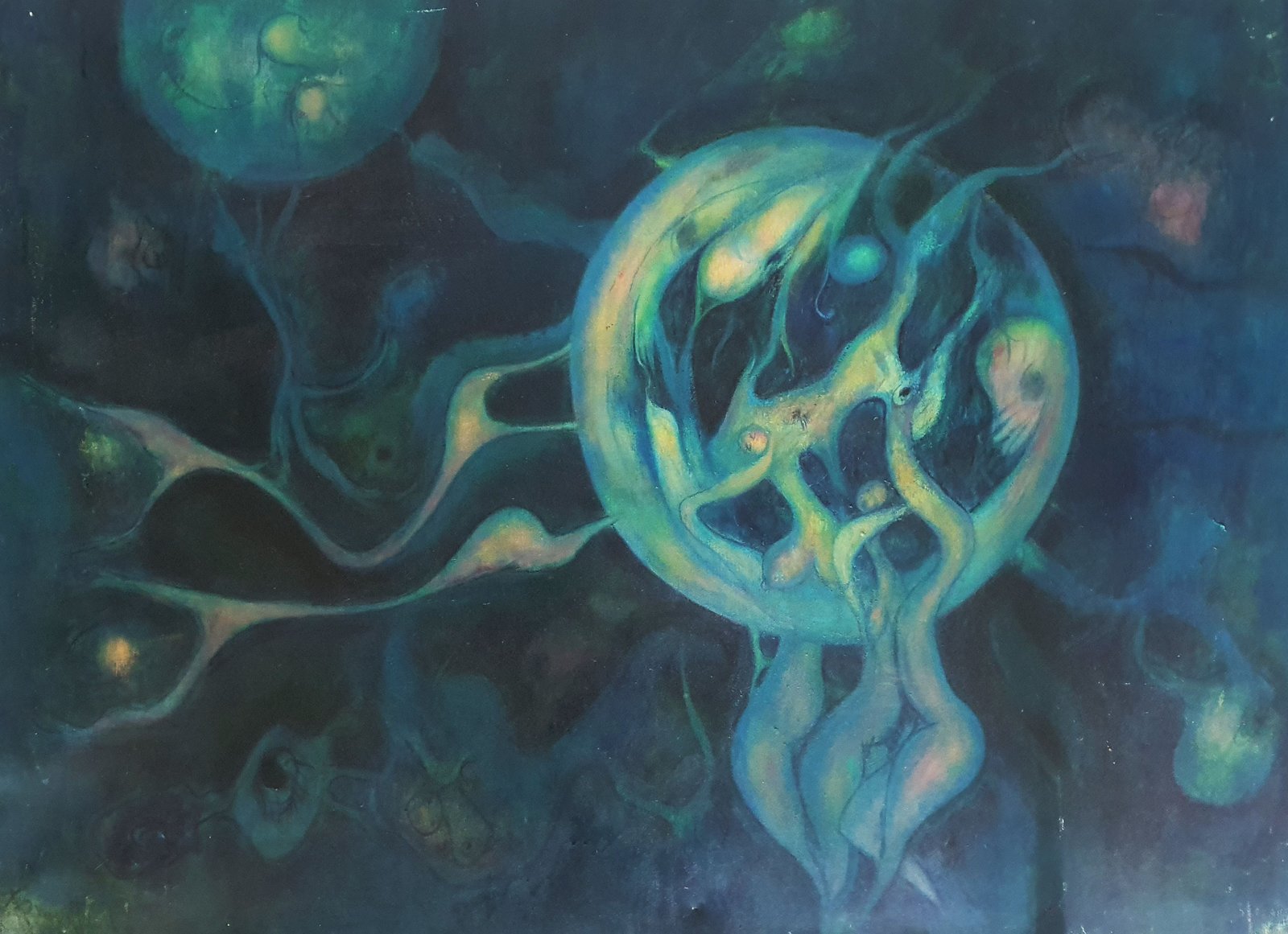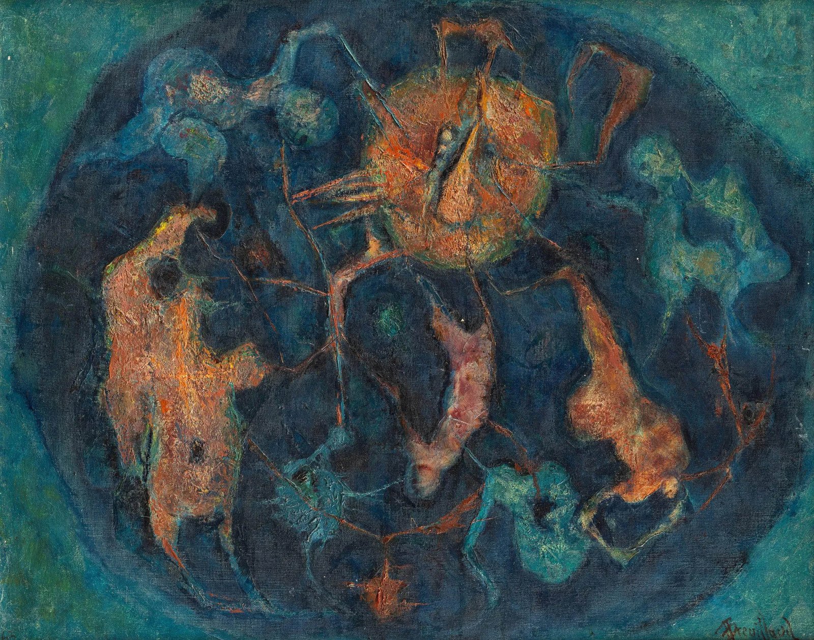 Dans la solitude de son atelier surgissent en lui des fantasmes. Il découvre un monde d'êtres hybrides et torturés se projetant dans les espaces intersidéraux. Tous ces êtres en décomposition lui font éprouver un besoin de recréation. Après cette grande méditation, il reprend ses pinceaux pour traduire plastiquement ses sensations dans le but de dégager de tout ce magma de branches et de pierres, des forces humaines et animales. Ces recherches sont élaborées dans des matières et des couleurs qui doivent être riches, et bien vieillir comme des pierres précieuses.