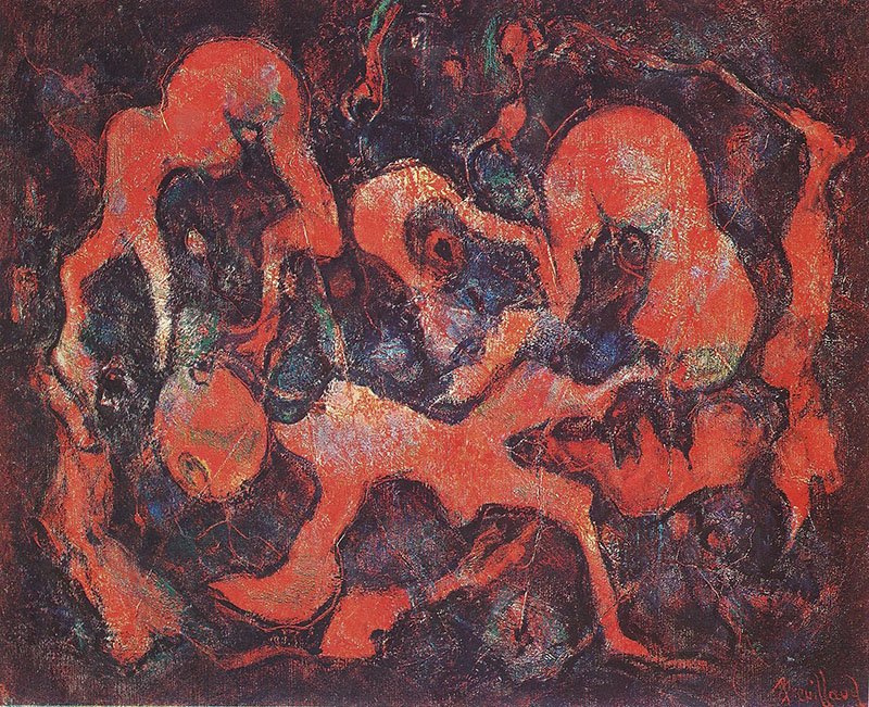 C'est d'Afrique qu'il avait rapporté l'éblouissement des harmonies éclatantes dans le souvenir des vieilles estampes persanes, une matière dense, émaillée, une sorte de brio dont il a conservé le romantisme dans nombre de ses œuvres, mêmes contemporaines. Un peu plus tard, fréquentant Modigliani et Soutine, ce brio tend vers l'expressionnisme, vers une sorte de stylisation géométrique au service de l'effet, un amour de la terre, un souci de signification plastique...